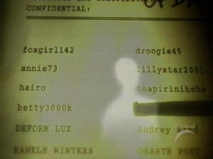 *During the credits sequence there is a flash-frame of a document containing the names of many online X-Philes and some anagrams of ‘X-Files’ characters (e.g. ‘Deform Lux’ is Fox Mulder) under the heading ‘FBI Contacts, Witnesses and Contributors’: